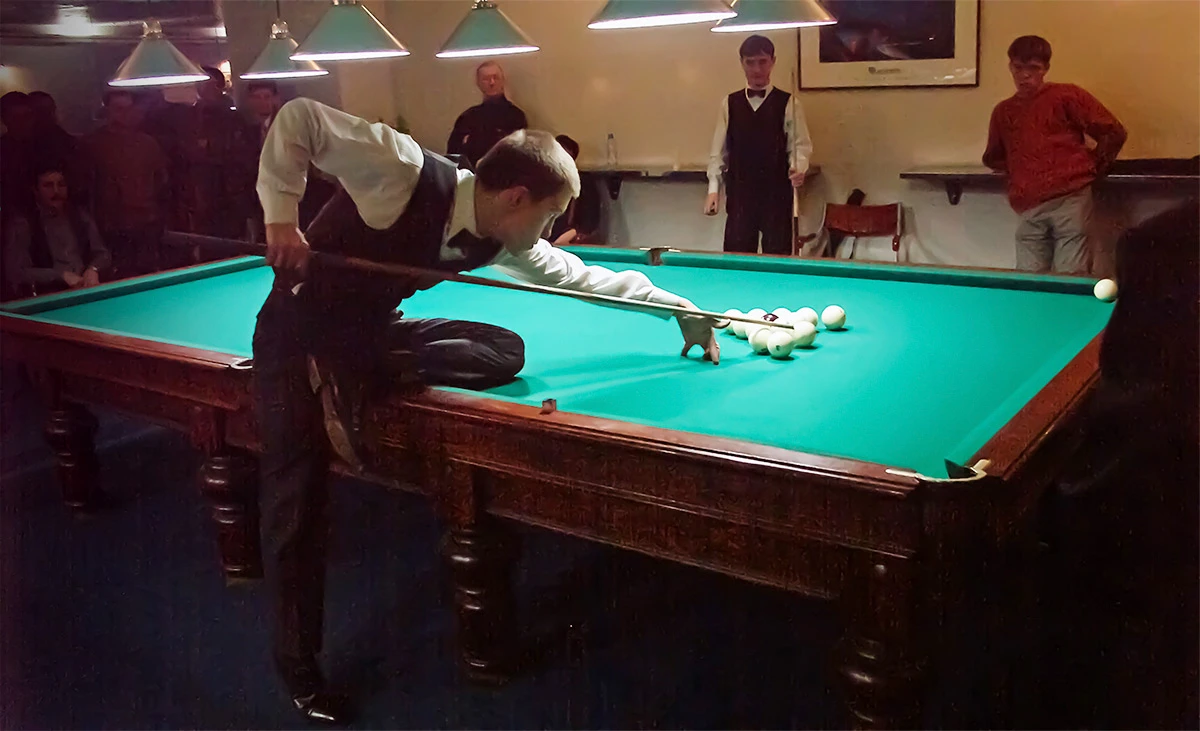 Главный инструмент в арсенале Сталева — это запредельная оттяжка. В русском бильярде шар весит около 280 граммов. Сдвинуть такую массу и заставить её вернуться назад после соударения на полтора-два метра — задача, которая для многих остаётся за гранью возможного.