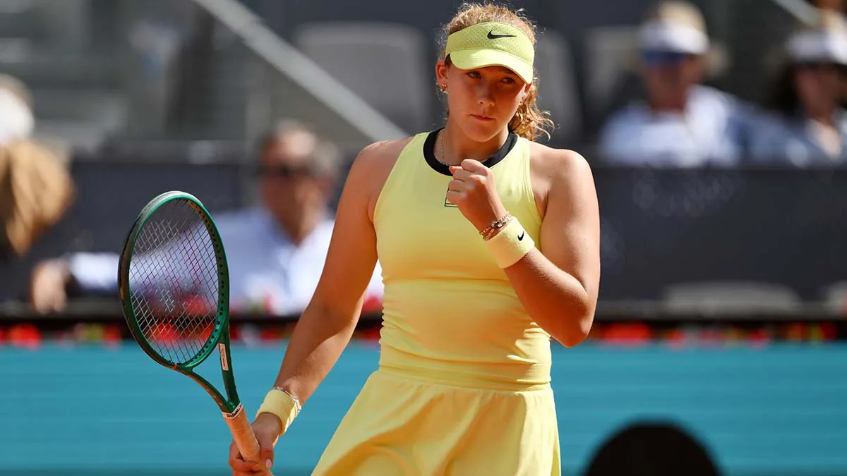 Мирра Андреева продолжает своё победное шествие по Мадриду. Обыграв американку Хейли Баптист, россиянка вышла в свой первый финал грунтового «тысячника» в карьере. Таким образом, она стала первой теннисисткой, которая вышла в решающую стади. трёх турниров WTA-1000 в возрасте не старше 19 лет.